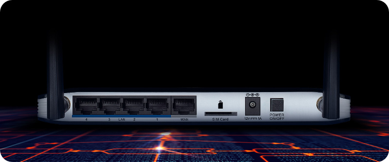 1x WAN 1x Gniazdo na kartę SIM 4x LAN 10/100 Mbps |