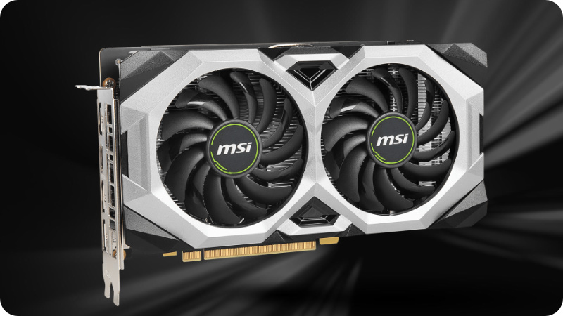 Chłodnica z dwoma wentylatorami została wkomponowana w elegancką obudowę o neutralnej kolorystyce. Dzięki temu bez problemu wkomponujesz kartę MSI do swojej konfiguracji komputera o każdym stylu. Wentylatory Torx 2.0 zostały wyposażone w dwurzędowe łożyska kulkowe i zapewniają niezwykłą wydajność chłodzenia. Tradycyjne łopatki pracują w połączeniu z łopatkami dyspersyjnymi, oferując zarówno jednostajny przepływ powietrza do znajdującego się pod wentylatorem masywnego radiatora, jak i przyspieszenie przepływu tłoczonego przez wentylator powietrza poprawiając skuteczność działania.