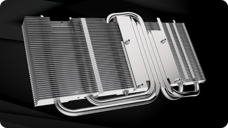 Ciepłowody o grubości do 6 mm mają bezpośredni kontakt z procesorem graficznym, skutecznie odprowadzając ciepło do radiatora. Wykorzystany w kartach VENTUS środek termoprzewodzący klasy premium zachowuje swoje właściwości przez długi czas, pozwalając Ci cieszyć się nieprzerwaną wydajnością.