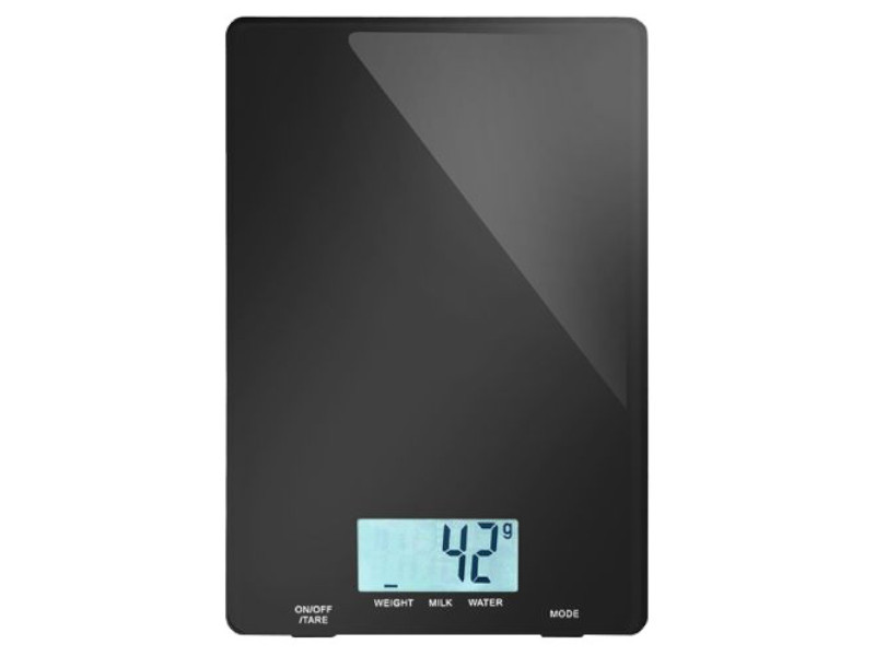 Elektroniczna waga kuchenna w kolorze czarnym. Niezwykle pomocna przy przygotowywaniu dań wymagających określonych porcji produktów. Jej szklana platforma o wymiarach 22x15 cm wyposażona w bardzo precyzyjne czujniki pozwala na zważenie nawet niewielkich ilości produktów z wielką precyzją. Waga waży w zakresie od 0 do 5 kg a z dokładnością 1g.