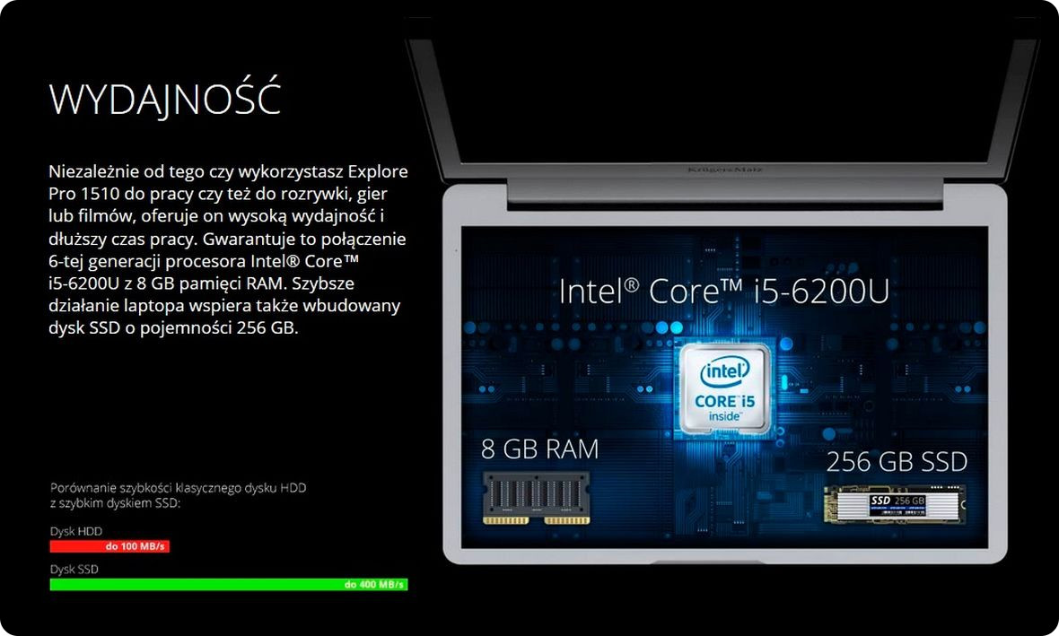 Intel Core i5-6200U (2 rdzenie, od 2.30 GHz do 2.80 GHz, 3 MB cache)