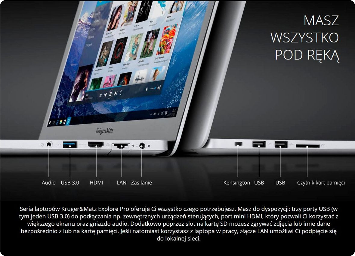 USB 2.0 - 2 szt. USB 3.0 - 1 szt. Jack 3,5 mm - 1 szt. RJ-45 - 1 szt. HDMI - 1 szt. Czytnik kart pamięci - 1 szt. Gniazdo Kenington lock - 1 szt. |