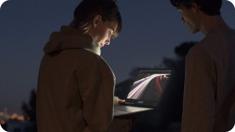 Nie musisz wybierać pomiędzy wydajnością a przenośnością. Ważące zaledwie 1,25 kg urządzenie Surface Laptop zapewnia idealne wyważenie tych cech, a jego bateria umożliwia pracę przez nawet 14,5 godziny, czyli cały dzień.