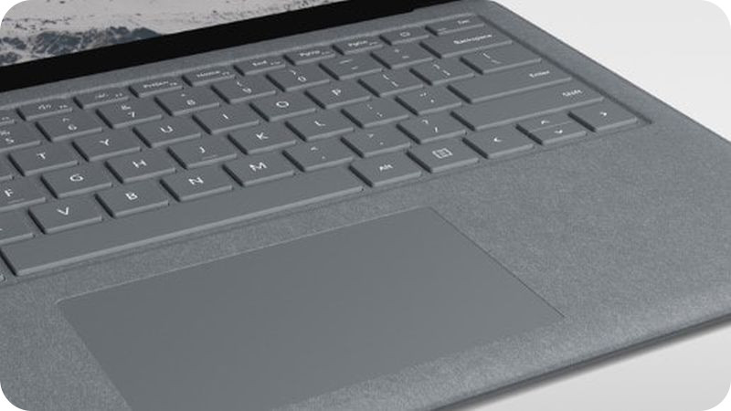 Surface Laptop to doskonałe połączenie powierzchni o odpowiedniej fakturze, subtelnych detali, prostych i eleganckich linii oraz luksusowej i przyjemnej w dotyku klawiatury pokrytej materiałem Alcantara. Nasza cudownie miękka i niewiarygodnie wytrzymała klawiatura pokryta materiałem Alcantara jest impregnowana specjalną powłoką poliuretanową, by była odporna na rozlanie płynów.