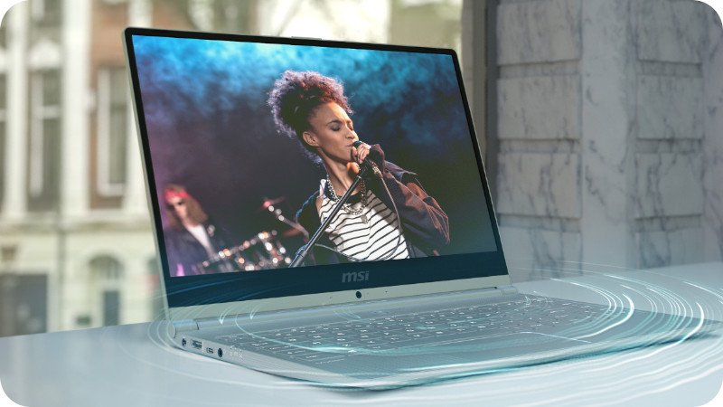 Ciesz się filmowym dźwiękiem nawet w domu. Technologia dźwiękowa Nahimic 3 wzbogaca ulubioną muzykę w wirtualny dźwięk przestrzenny, który odtwarzany jest za pośrednictwem standardowego sprzętu audio.