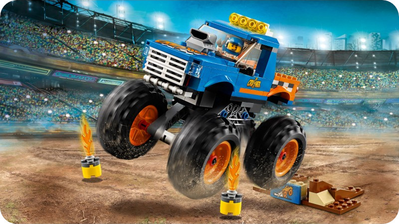 Wsiądź za kierownicę kolorowego monster trucka z zestawu LEGO® City i wykonaj ewolucje, które zaprzeczają grawitacji! Model ma wielkie koła, wlot powietrza i działające zawieszenie, a w pudełku znajdziesz poza nim rampę z klocków i 2 płonące baryłki z elementami ognia. W tym efektownym zestawie dla dzieci jest też minifigurka.