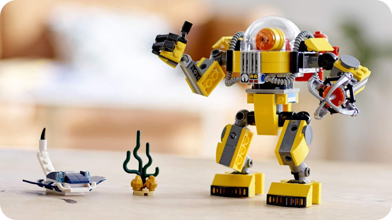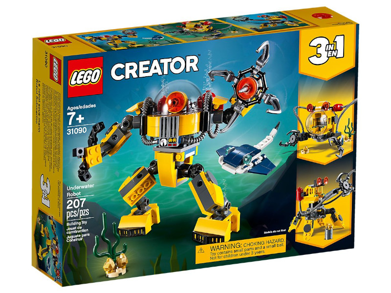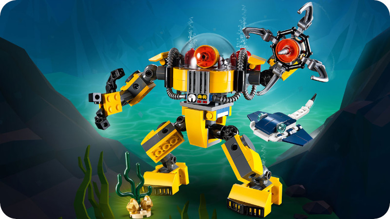 - Zestaw LEGO Creator 3 w 1 umożliwia zbudowanie trzech różnych modeli. Przebuduj robota i płaszczkę na rewelacyjną łódź podwodną z wysięgnikiem do badania oceanów lub podwodny dźwig do szukania skarbów.