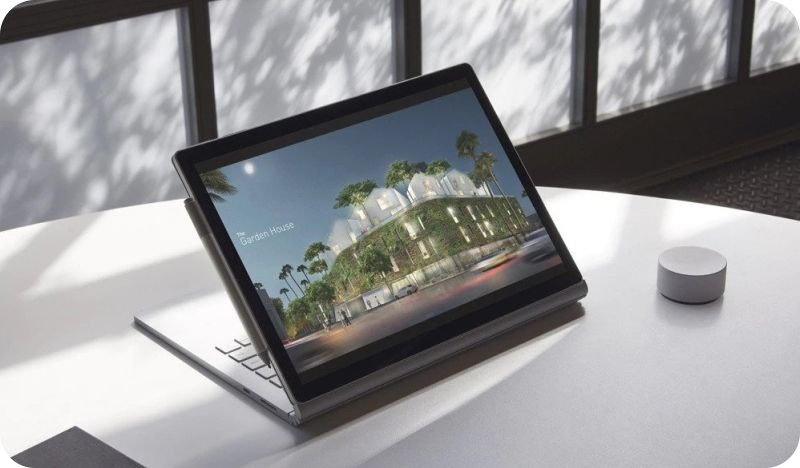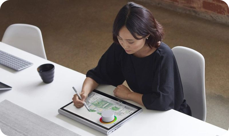 Złóż urządzenie Surface Book 2 i przełącz je w tryb Studio, aby rysować i szkicować wygodnie i naturalnie. Sięgnij po Surface Dial i pióro Surface, aby pozwolić całkowicie się pochłonąć procesowi tworzenia.