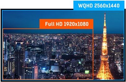 Dzięki rozdzielczości natywnej WQHD 2560 x 1440 (3,7 megapiksela) ten panel wyświetla niemal 77% więcej informacji niż w przypadku rozdzielczości Full HD.