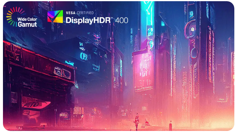 Monitor MSI MAG 321CUPDF posiada certyfikat VESA DisplayHDR 400, co gwarantuje szczegółowość wyświetlanych obrazów, szerszy zakres kolorów oraz wygląd zbliżowny do tego, co postrzega ludzkie oko, w porównaniu do tradycyjnych monitorów. Zapewnia doskonałe wrażenia płynące z gier i multimediów, renderując każdy detal z żywymi kolorami i wyjątkową przejrzystością.