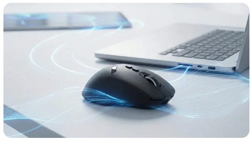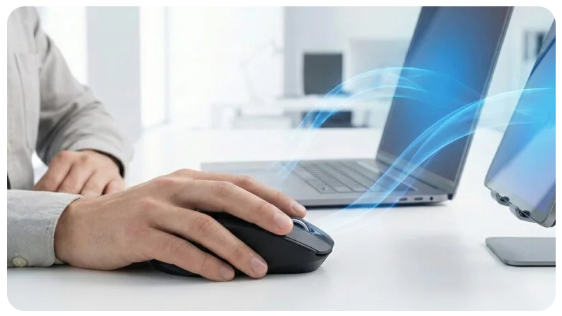 Zapomnij o plączących się przewodach i postaw na pełną swobodę pracy. Myszka wykorzystuje nowoczesny standard Bluetooth 5.4, który zapewnia szybkie parowanie, stabilne połączenie i mniejsze zużycie energii. Łączy się bezpośrednio z laptopem, tabletem lub smartfonem, nie zajmując żadnego portu USB. Dla komputerów bez Bluetooth w zestawie znajduje się miniaturowy odbiornik USB. Po podłączeniu działa w paśmie 2.4 GHz, gwarantując natychmiastową reakcję kursora i stabilny zasięg. Jedna myszka daje Ci pełną kompatybilność i swobodę wyboru.