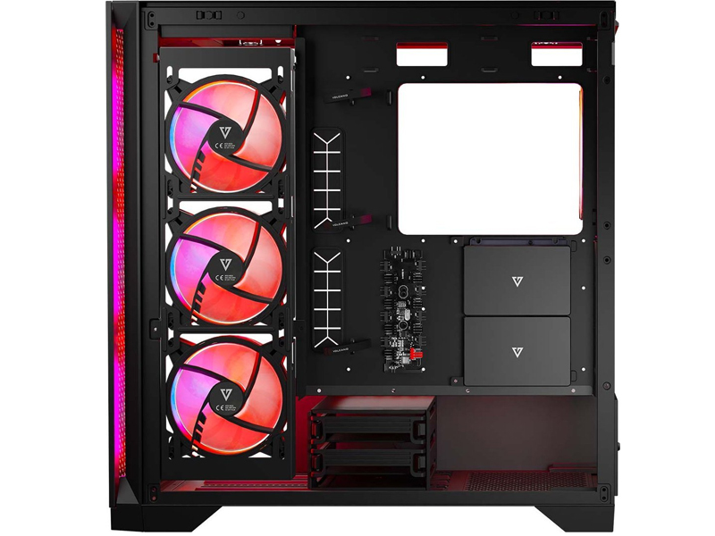 3x 120 mm (prawy bok) 1x 140 mm (tył) 3x 140 mm (przód) 2x 140 mm (góra) 3x 120 mm (góra) |