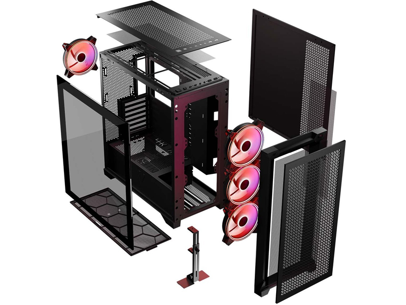 Filtry antykurzowe Panel boczny ze szkła hartowanego Montaż zasilacza na dole obudowy Kontroler / hub wentylatorów Podświetlenie ARGB |