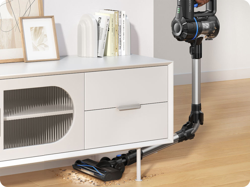 Jednym z największych atutów odkurzacza Dreame Mova J10 jest głowica szczotki z oświetleniem LED. Diody LED oświetlają ciemne miejsca, np. pod meblami, co znacznie ułatwi Ci sprzątanie w trudno dostępnych miejscach. Ponadto składana rura pozwala łatwo dotrzeć do niskich przestrzeni, co minimalizuje potrzebę zginania kręgosłupa. Dzięki temu sprzątanie staje się prostsze i mniej obciążające dla Twojego ciała.