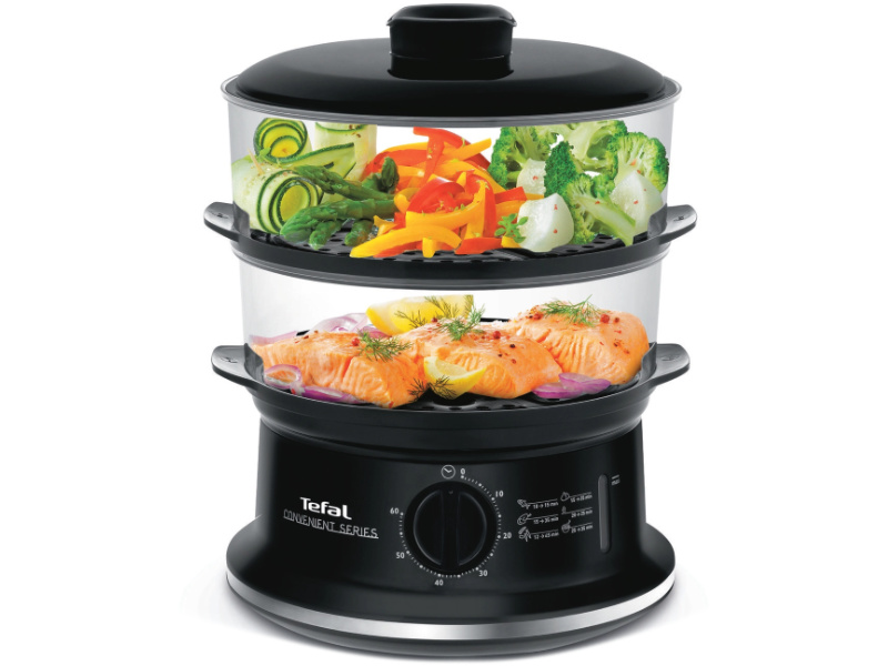 Odkryj korzyści gotowania na parze z urządzeniem Tefal Convenient. Kompaktowy rozmiar parowaru ułatwia przechowywanie. Napełnianie wodą podczas gotowania pozwala uzupełnić brakujący płyn w celu dalszego generowania pary. Wyjmowane kratki pozwalają na kotowanie większych produktów, oferując wysoką elastyczność.