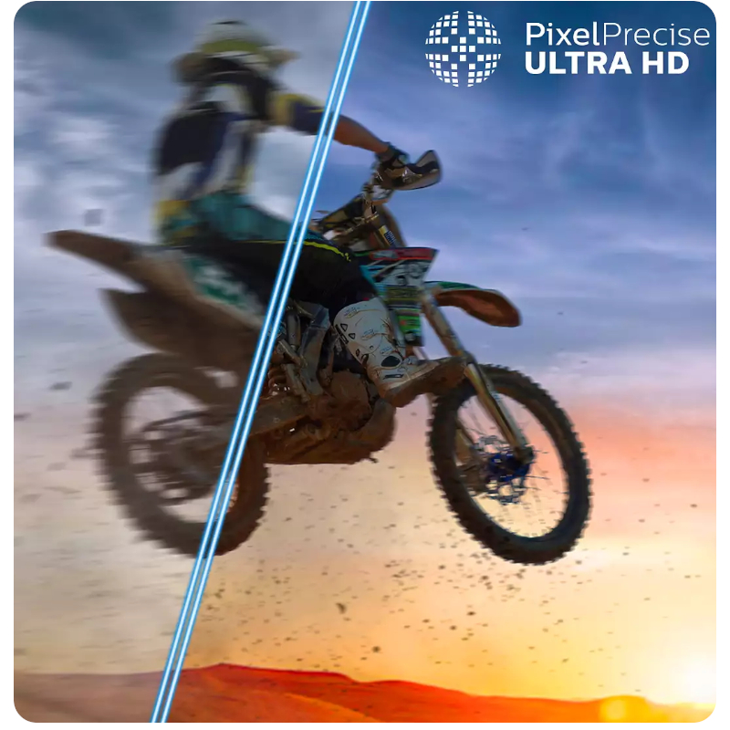 Dzięki 8 milionom perfekcyjnie współpracujących pikseli, rozdzielczość 4K w telewizorze Philips przenosi oglądanie na zupełnie nowy poziom. Obrazy są niesamowicie ostre, a każdy szczegół — wyjątkowo wyraźny i realistyczny. Każda scena zyskuje głębię i naturalność, jakiej wcześniej nie doświadczyłeś. Nieważne, czy to dynamiczna akcja, subtelna mimika aktorów czy majestatyczne krajobrazy — wszystko wygląda tak prawdziwie, jakbyś tam był.