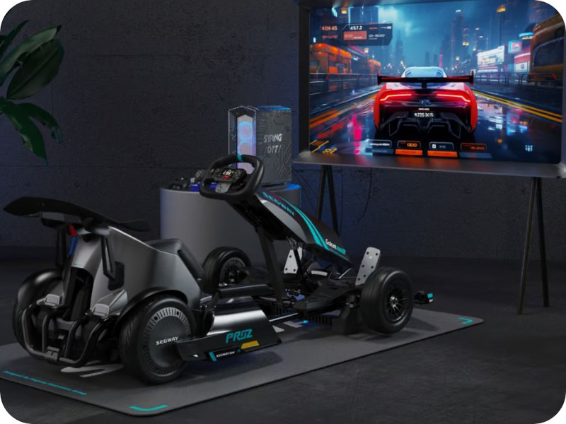 Ninebot Gokart Pro 2 to zaawansowany gokart elektryczny zaprojektowany z myślą o emocjonującej, a jednocześnie bezpiecznej jeździe. Urządzenie oferuje aż cztery tryby jazdy – Eco, Sport, Race i Manualny, które pozwalają dostosować dynamikę pojazdu do poziomu zaawansowania użytkownika oraz preferowanego stylu jazdy. Tryb Eco idealnie sprawdzi się do nauki jazdy i oszczędzania energii, Sport zwiększa osiągi i przyspieszenie, Race oferuje maksymalną moc i prędkość, a tryb Manualny pozwala na precyzyjne sterowanie zgodne z indywidualnymi ustawieniami kierowcy. Gokart wyposażono również w symulator wyścigów, który wzbogaca doświadczenie jazdy, przenosząc użytkownika w świat realistycznych emocji torowych. Zaawansowane algorytmy oraz interakcja z aplikacją mobilną umożliwiają analizę osiągów, dostosowanie ustawień i jeszcze głębsze zanurzenie się w wirtualnej rywalizacji.