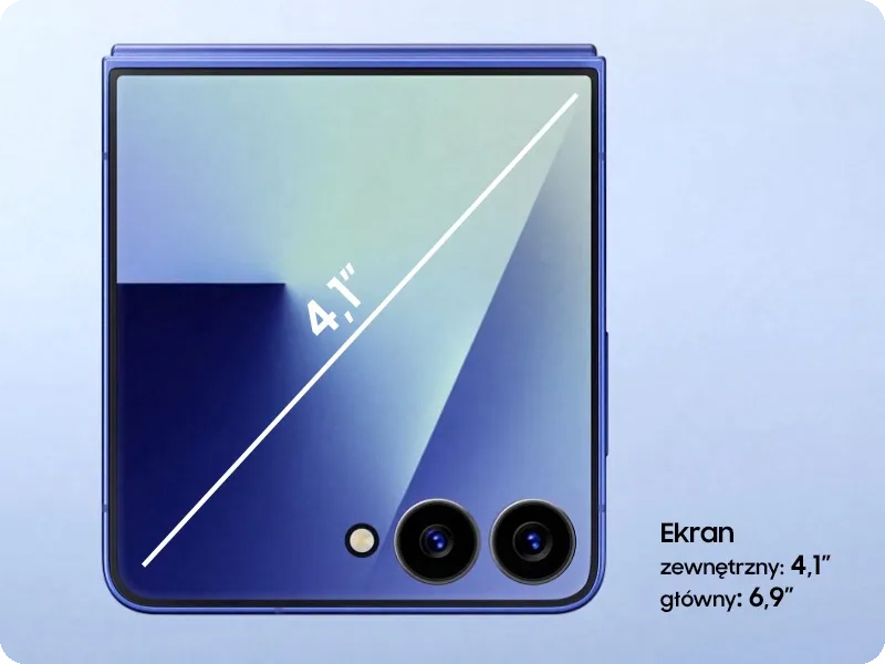 Flip 7 oferuje dwa wyświetlacze typu Dynamic AMOLED 2X z odświeżaniem 120 Hz, co przekłada się na wyjątkowo płynne animacje. Główny ekran ma aż 6,9 cala i rozdzielczość 2520 × 1080, zapewniając kontrast i klarowność obrazu. Ekran zewnętrzny – o przekątnej 4,1 cala i rozdzielczości 1048 × 948 – umożliwia obsługę podstawowych funkcji bez konieczności otwierania smartfona. Oba wyświetlacze obsługują rozdzielczość FHD+ i oferują jasność do 2600 nitów, co gwarantuje dobrą widoczność nawet w słońcu. Technologia AMOLED 2X przekłada się na żywe, nasycone barwy i głęboką czerń.