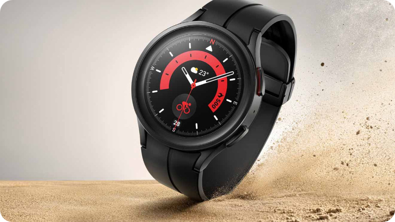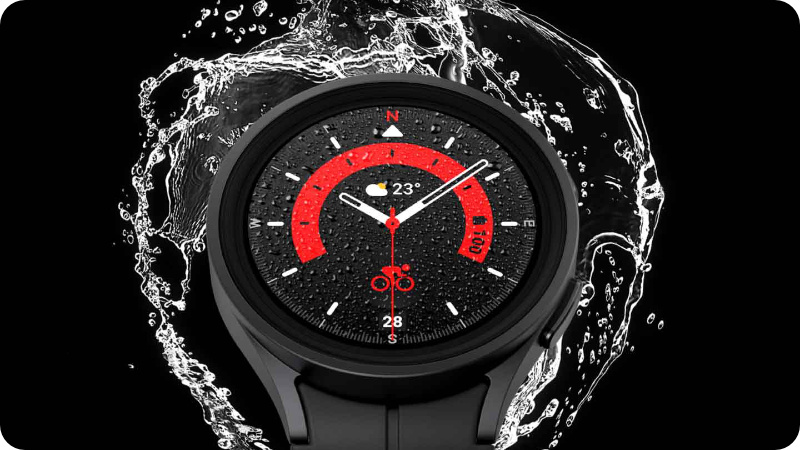 Poznaj, czym jest stylowa wytrzymałość. Elegancki Galaxy Watch5 Pro jest odporny na wodę, działając również podczas deszczowych treningów. Zachwycający, okrągły wyświetlacz AMOLED został pokryty szkłem szafirowym, które oferuje nawet 2x lepszą wytrzymałość niż Galaxy Watch4. Wytrzyma praktycznie wszystko, co spotyka cię każdego dnia dzięki tytanowej obudowie. Wzniesione krawędzie dodatkowo chronią ekran przed uderzeniami.