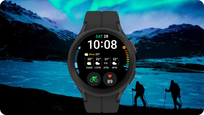 Daj z siebie wszystko i wspinaj się na nowe wyżyny swoich możliwości z zegarkiem, który nie wymięka. Największa jak do tej pory bateria w urządzeniach ubieralnych Galaxy ma pojemność aż 590 mAh. Nawet 80 godzin normalnego użytkowania na jednym ładowaniu oznacza, że Galaxy Watch5 Pro będzie wspierał Cię długo po zakończonym treningu.