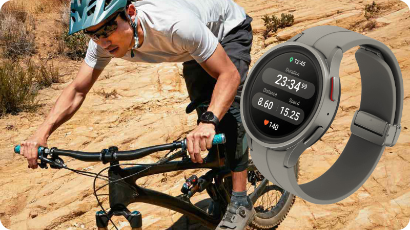 Galaxy Watch5 Pro liczy każdy Twój krok, spalone kalorie, oraz programy ćwiczeń. Zegarek pozwala Ci śledzić ponad 90 różnych rodzajów ćwiczeń. Bez względu na to, w jaki sposób spędzasz aktywnie czas, smartwatch Samsung dostarczy szczegółowych danych na temat każdej minuty Twojego wysiłku.
