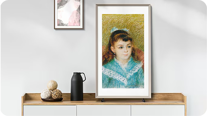 Jednym z największych atutów tego modelu jest jego Art Mode, który umożliwia wyświetlanie obrazów i fotografii z szerokiej kolekcji dzieł sztuki dostępnej w Samsung Art Store lub własnych zdjęć. Dzięki temu, zamiast czarnego ekranu, telewizor może zamienić się w elegancką ramkę, idealnie komponującą się z wystrojem pomieszczenia. Co więcej, model Frame 32" oferuje możliwość wymiany ramek, dostępnych w różnych kolorach i stylach, co pozwala dopasować wygląd urządzenia do indywidualnych preferencji estetycznych. Wymiana ramki jest łatwa i szybka, a magnesy ułatwiają jej montaż.