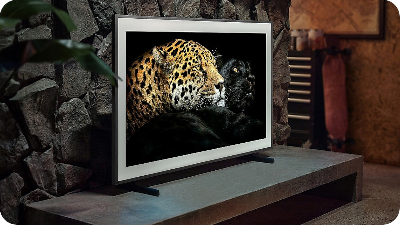 Telewizor wyposażono w ekran QLED Full HD o rozdzielczości 1920x1080, co zapewnia doskonałą ostrość i wyrazistość obrazu na mniejszym ekranie. Dzięki technologii Quantum Dot, urządzenie jest w stanie wyświetlić 100% natężenia kolorów, co przekłada się na niezwykle bogatą paletę barw i realistyczne odwzorowanie szczegółów. Telewizor wykorzystuje również Matowy Wyświetlacz, który minimalizuje odblaski światła, zapewniając doskonałą widoczność obrazu, nawet w jasnych pomieszczeniach, co jest szczególnie przydatne w trybie Art Mode.