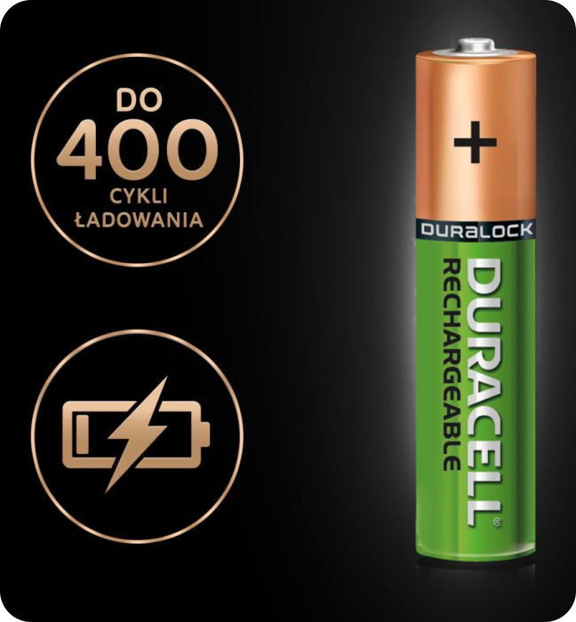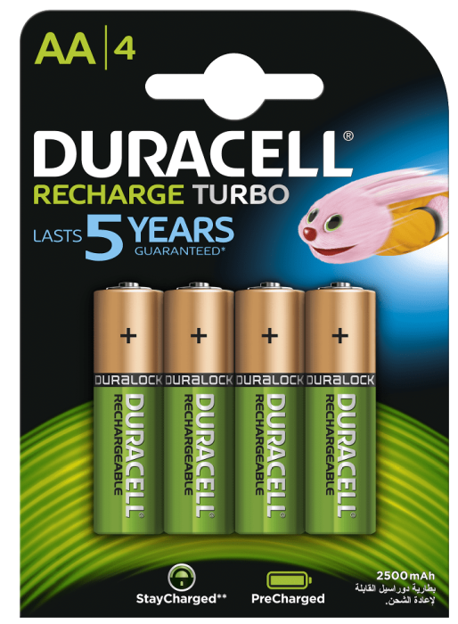 Duracell Recharge Turbo AA to nasze najdłużej działające akumulatorki, które można ładować do 400 razy. Wyjątkowa moc dzięki rdzeniowi Long-Life Ion Core w każdym akumulatorku. Akumulatorki są fabrycznie naładowane. Dzięki temu możesz zasilać swoje urządzenie zaraz po ich rozpakowaniu. Akumulatorki będą naładowane przez 12 miesięcy, kiedy ich nie używasz. Gwarantujemy, że nieużywane akumulatorki Duracell Recharge Turbo wytrzymają 5 lat. Te mocne akumulatorki Ni-MH działają ze wszystkimi ładowarkami do akumulatorków Ni-MH. Wytrzymują dłużej na jednym ładowaniu i wymagają rzadszego ładowania, co wyróżnia je spośród innych.