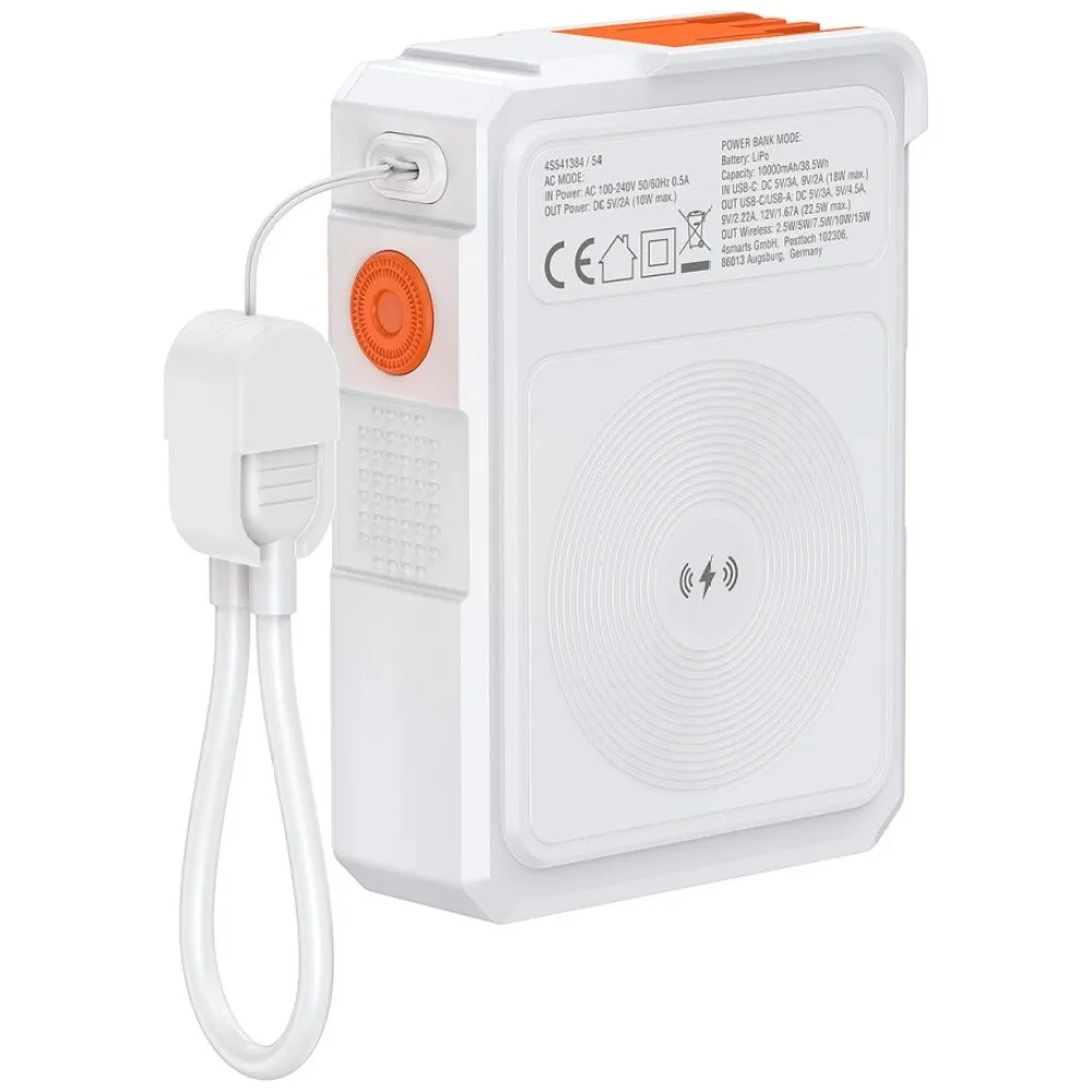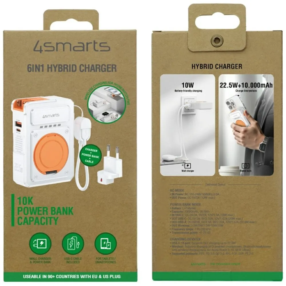 4smarts Ładowarka 6w1 Powerbank 10000mAh 22,5W Qi indukcyjne USB-C + USB-A + kabel USB-C Biała