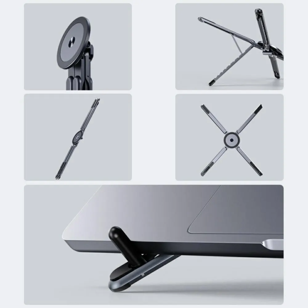 Wysoka jakość wykonania, aluminiowa konstrukcja i efektywna konstrukcja, która stanowi funkcję dla różnych stylów pracy w czasie rzeczywistym iw telefonach komórkowych w podróży. Powierzchnia podpórki wyposażona jest w kabel magnetyczny z MagSafe, pozwala na magnetycznie przyczepić telefon, pozostając w pionowych pozycjach, idealnych do przeglądania filmów, prowadzących rozmowy wideo lub użytkowników z aplikacji.