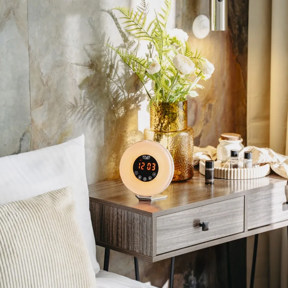 Rozpocznij dzień w naturalny sposób z budzikiem świetlnym Adler AD 1916 - nowoczesnym rozwiązaniem, które wspiera rytm biologiczny, poprawia jakość snu i sprawia, że poranki stają się łagodniejsze i bardziej przyjemne.