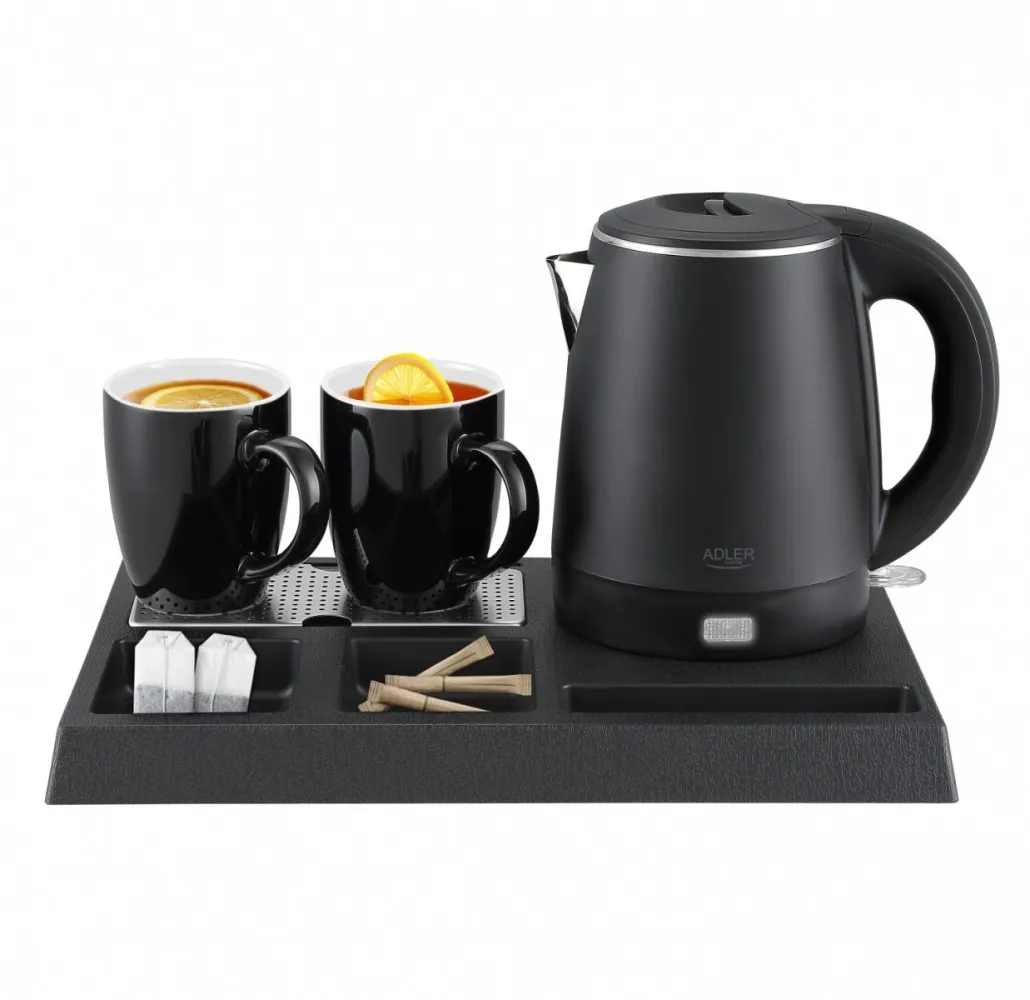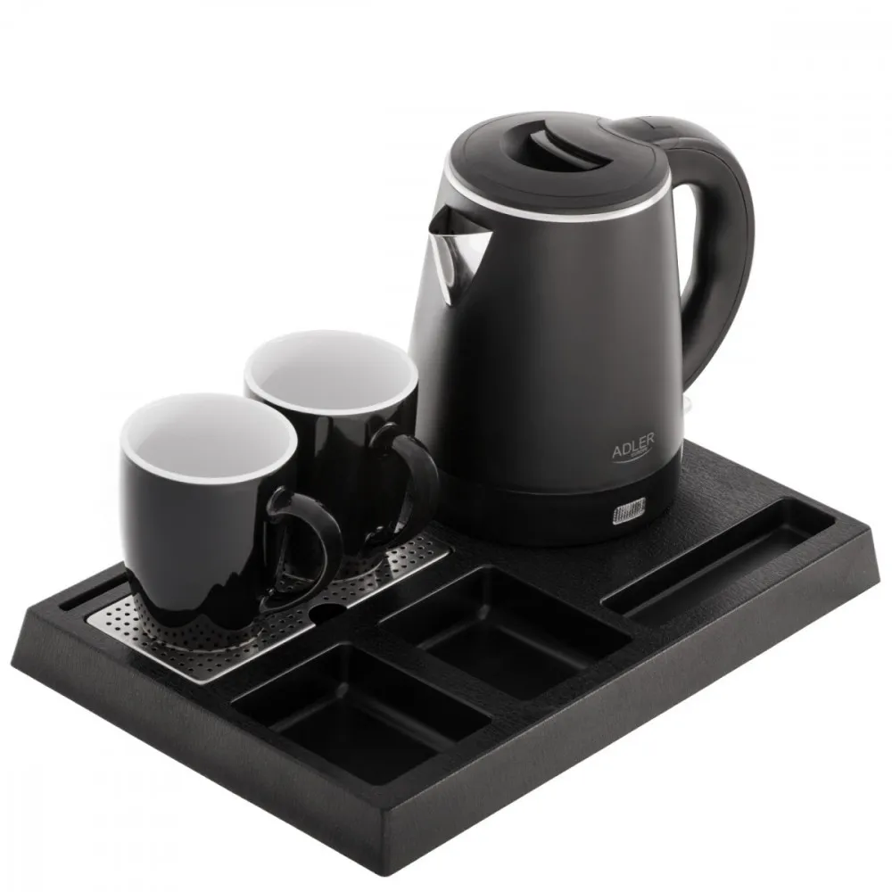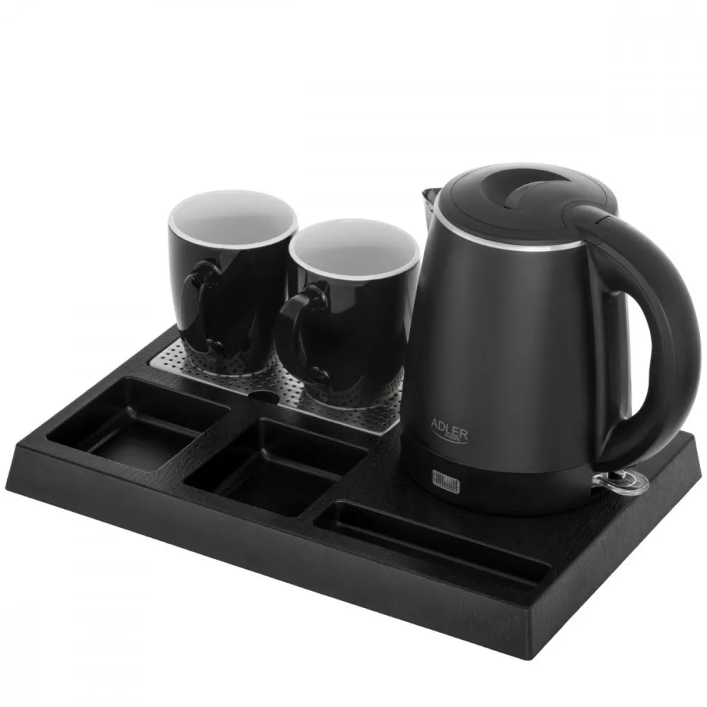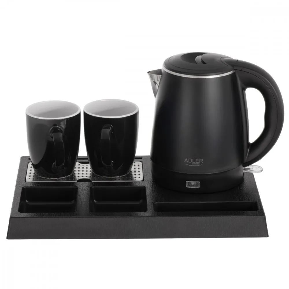 Adler Czajnik hotelowy AD 1387 z tacką z 2 kubkami 1l, inox
