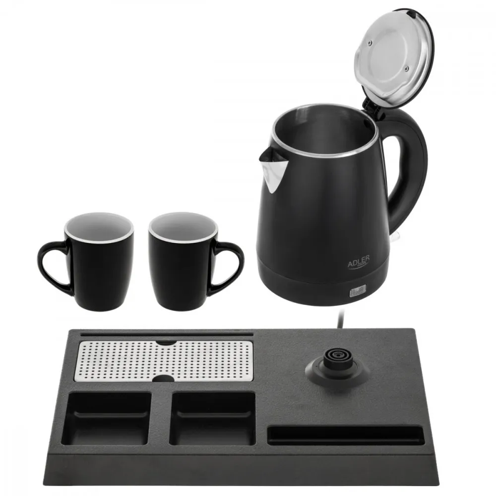 RTV, AGD i FotoMałe AGD Do kuchniCzajnikiAdler Czajnik hotelowy AD 1387 z tacką z 2 kubkami 1l, inox