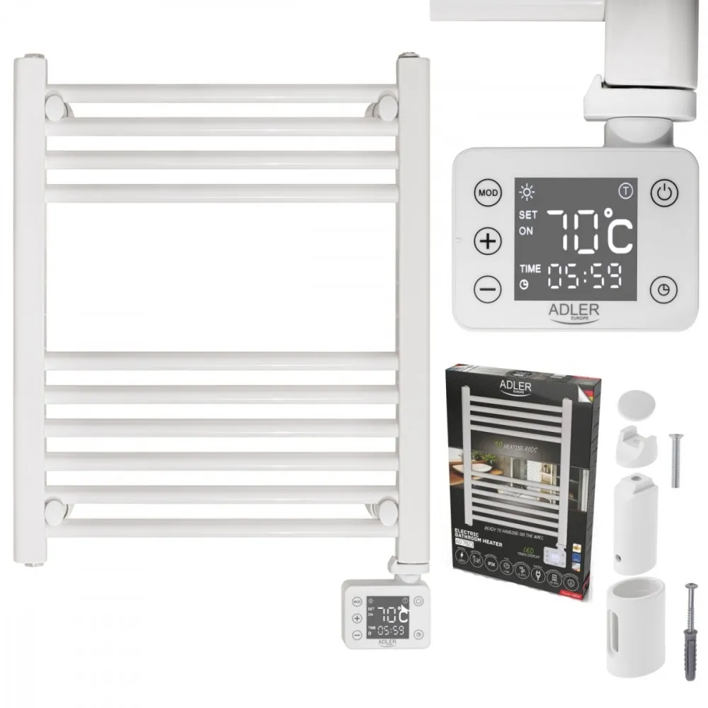 Elektryczny grzejnik łazienkowy LED Adler 7823 został zaprojektowany, aby zapewnić wydajne rozwiązania grzewcze i suszące dla Twojej łazienki, zapewniając komfort i wygodę dzięki przyjaznym użytkownikowi funkcjom i niezawodnej konstrukcji.