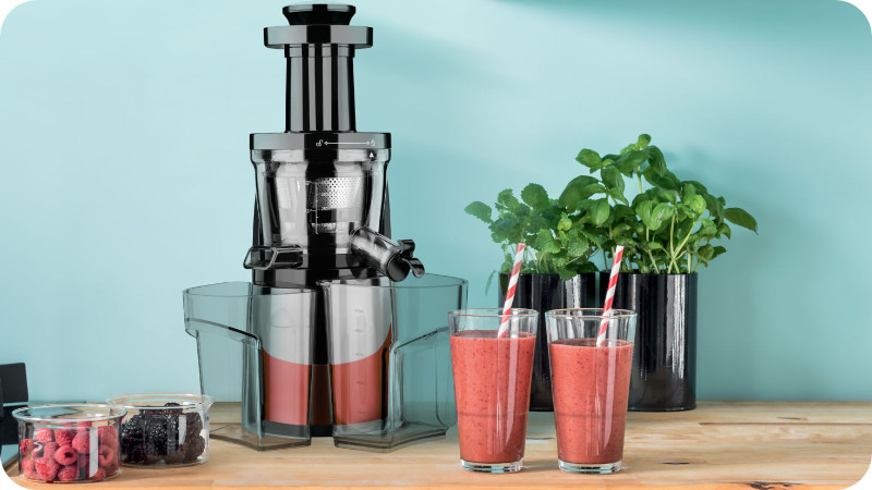 Dzieki dotykowemu panelowi sterowania z łatwością dostosujesz pracę wyciskarki. Mieszaj soki z różnych owoców, twórz ulubione napoje, wszystko jest bajeczenie proste. Nie martw się o spowolnioną pracę lub zacięcia. Sito może obracac się w dwóch kierunkach, co pozwala odblokować zatory i udrożnić urządzenie. Blokada kapania oznacza koniec sprzątania powierzchni roboczej. Zamknięcie z uszczelką zapobiega wyciekaniu resztek soku z wyciskarki. Kolejnym rozwiązaniem dbającym o porządek w kuchni jest wskaźnik bezpiecznego zamknięcia. Po prostu upewnij się, że ikona zamknięcia jest spasowana z wizerunkiem kłódki.