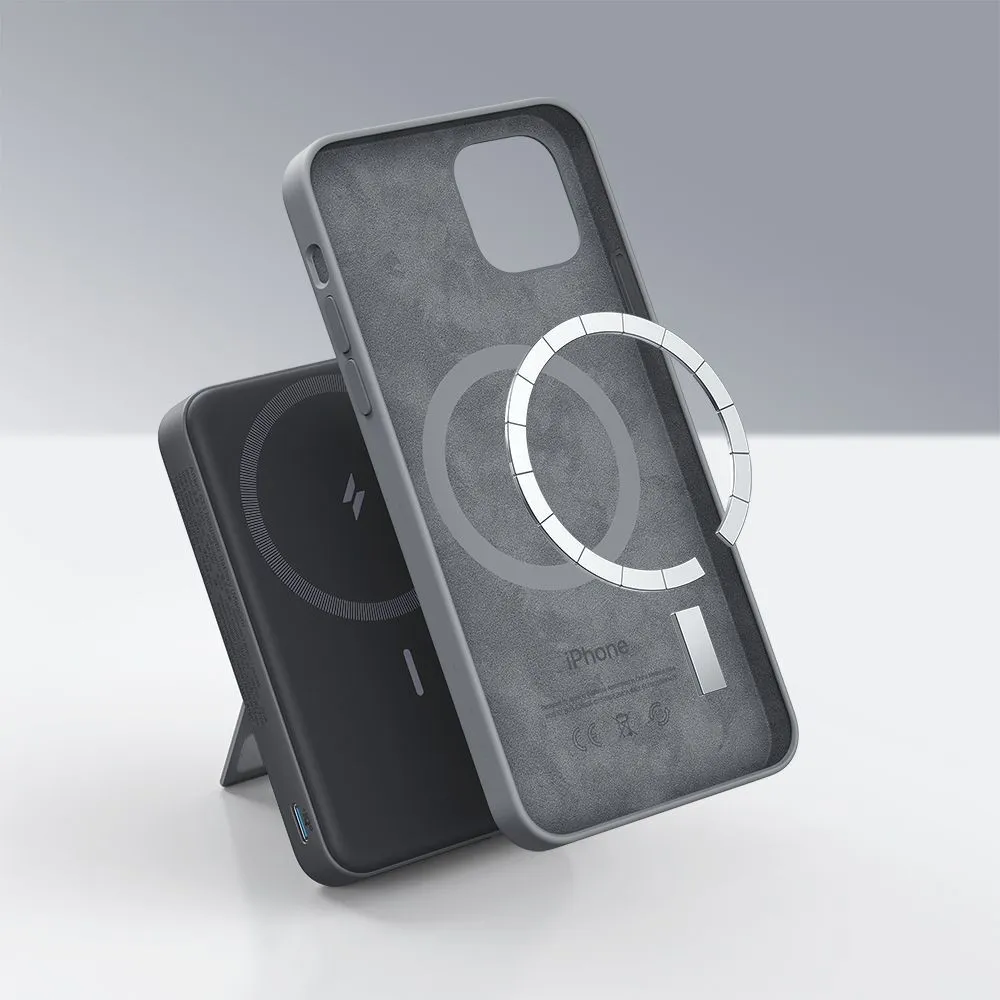 Silne połączenie magnetyczne bezpiecznie trzyma telefon. Wystarczy przypiąć przenośną ładowarkę z tyłu telefonu, aby bezproblemowo naładować urządzenie.