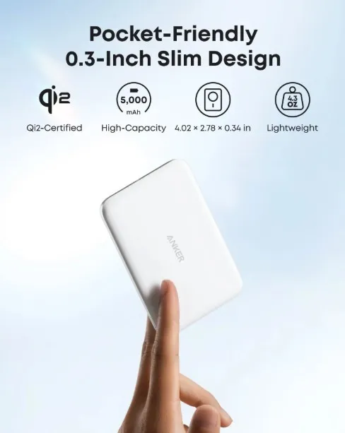 - Ultracienki magnetyczny power bank kompatybilny z Qi2: Ciesz się elegancją dzięki smukłemu magnetycznemu powerbankowi o przekątnej 0,3 cala, zapewniającemu niezawodne ładowanie 5,000 mAh.