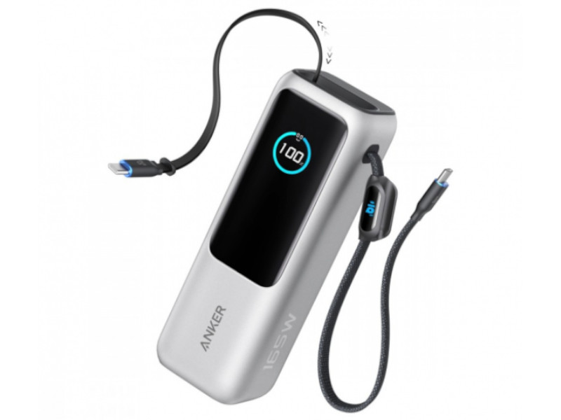 Anker Powerbank ZOLO 25000mAh 165W wbudowany kabel USB-C srebrny