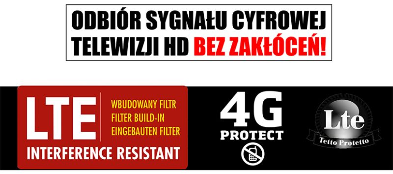 | Dodatkowe informacje: | Dwa dipole, zasięg do 120 km, filtr LTE |
