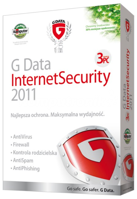 G Data InternetSecurity 2011 to najlepsza ochrona Twojego komputera oraz maksymalna wydajność systemu. Pakiet zawiera nowoczesne mechanizmy zabezpieczające komputer przed wirusami, rootkitami, robakami, trojanami, spamem, hakerami, stronami wykradającymi prywatne dane oraz najnowszymi zagrożeniami. Moduł kontroli rodzicielskiej chroni dzieci przed nieocenzurowaną treścią oraz ogranicza dostęp do komputera podczas nieobecności rodziców. Pakiet InternetSecurity wielokrotnie zwyciężał w testach niezależnych organizacji i potwierdzał wysoką jakość ochrony systemów informatycznych. Wersja 2011 posiada nowy ergonomiczny interfejs użytkownika oparty na dynamicznych zakładkach, dzięki któremu obsługa zaawansowanych funkcji jest bardzo prosta.