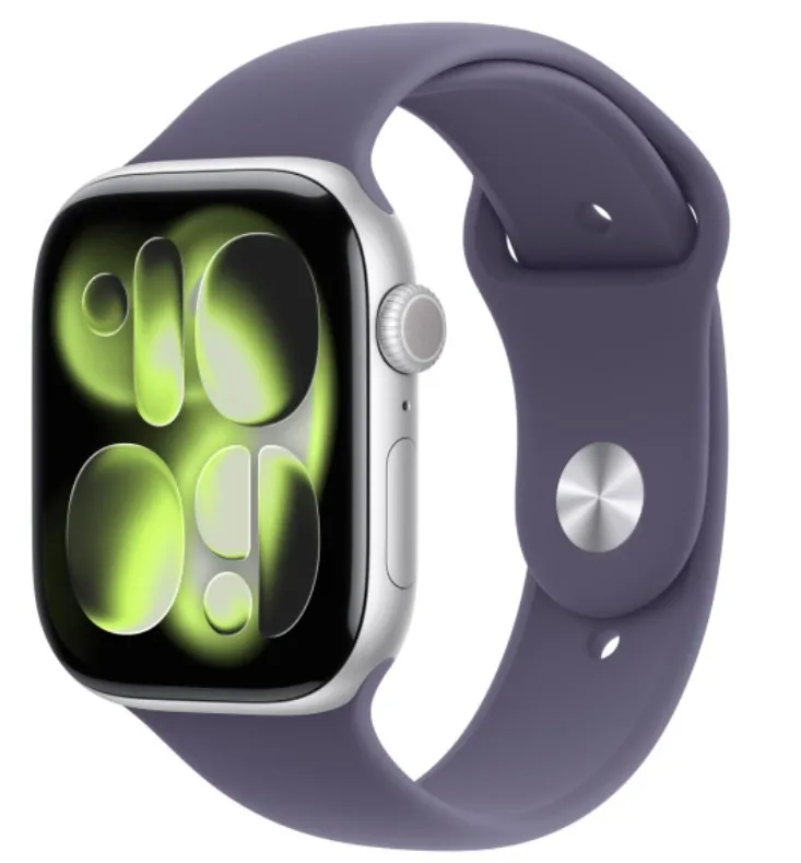 Apple Watch Series 11 GPS+Cellular koperta 46 mm z aluminium w kolorze srebrnym, pasek sportowy w kolorze mlecznego fioletu - rozmiar S/M
