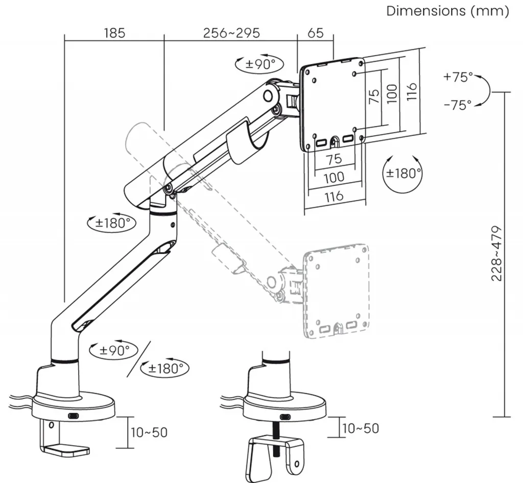 | Standard VESA: | 100 x 100, 75 x 75 |