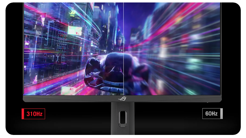 Niemal całkowicie wyeliminowane opóźnienia i rozmycie obrazu w ruchu dzięki częstotliwości odświeżania 310 Hz i błyskawicznemu czasowi reakcji 1 ms (od szarego do szarego). Kombinacja ta gwarantuje płynność i responsywność podczas rozgrywki, zapewniając Ci przewagę w grach o szybkiej akcji, takich jak strzelanki pierwszoosobowe (FPS), gry wyścigowe i gry strategiczne czasu rzeczywistego. Reaguj natychmiastowo na akcję wyświetlaną na ekranie i z pewnością siebie oddawaj decydujące strzały.