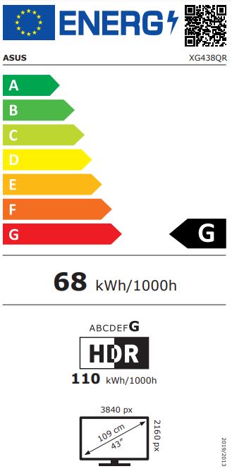 Asus Monitor 43 cale ROG Strix XG438QR 4K VA 4MS 600cd/m2 HDMI DP USB3.0 HDR600 120Hz Głośnik