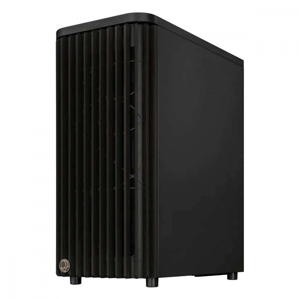 Drewno jesionowe, to rzadko spotykany materiał w obudowach. Został wybrany ze względu na swoją trwałość. Specjalny sześcioetapowy proces produkcyjny, zastosowany do stworzenia panelu przedniego, rozpoczyna się od termicznej obróbki drewna, mającej na celu ochronę przed owadami, wilgocią i ciepłem. Materiał panelu jest następnie kształtowany zgodnie z dokładną specyfikacją. Wreszcie, dwuetapowe naniesienie powłoki z lakieru, nadaje mu błyszczące wykończenie.