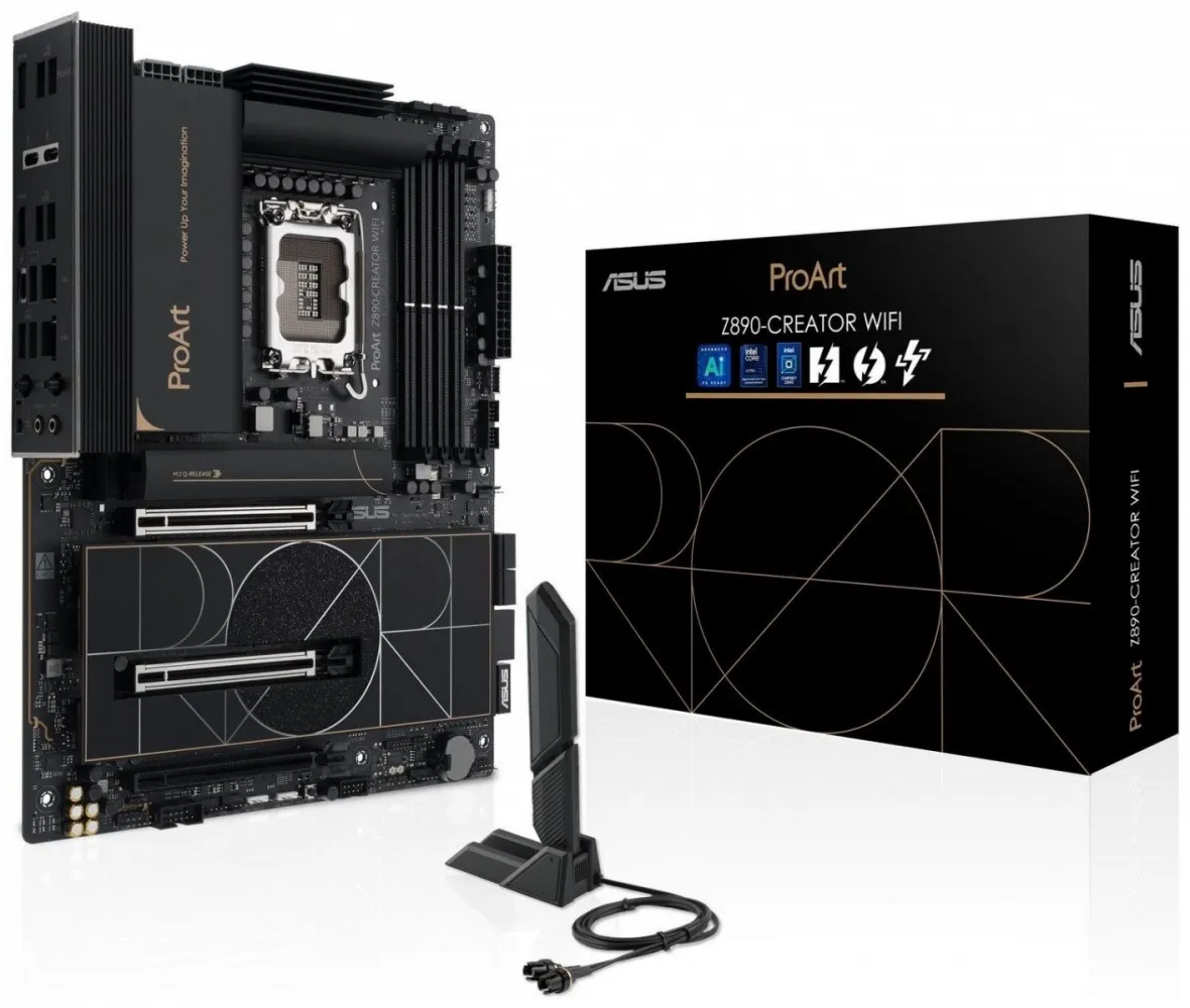 Płyta główna ProArt Z890-CREATOR WIFI wspiera twórców na wszystkich poziomach zaawansowania, maksymalizując wydajność najnowszych procesorów Intel Procesory Core Ultra Processor (Series 2) z 16+1+2+2 stopniami faz zasilania, gniazdami DDR5, PCIe 5.0 i błyskawiczna łączność, w tym dwa porty Thunderbolt 5, Ethernet 10G i 2.5G oraz Wi-Fi 7.