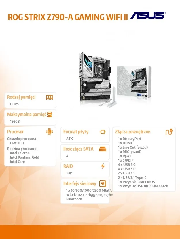 Asus Płyta główna ROG STRIX Z790-A GAMING WIFI II 4DDR5 HDMI ATX