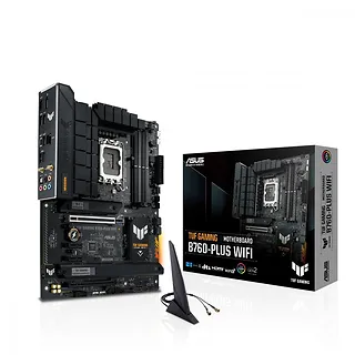 TUF Gaming B760-Plus WiFi wykorzystuje wszystkie istotne elementy najnowszych procesorów Intel i łączy je z funkcjami gotowymi do grania i sprawdzoną trwałością. Zaprojektowana z komponentów klasy wojskowej, ulepszonego rozwiązania zasilania i wszechstronnego systemu chłodzenia, ta płyta główna przekracza oczekiwania, oferując solidną wydajność w maratonach gier. Płyty główne TUF Gaming przechodzą również rygorystyczne testy wytrzymałościowe, aby mieć pewność, że poradzą sobie z warunkami, w których inne płyty mogą zawieść. Pod względem estetycznym model ten ma wytłoczoną tabliczkę znamionową i geometryczne elementy konstrukcyjne, które odzwierciedlają niezawodność i stabilność, które definiują serię TUF Gaming.