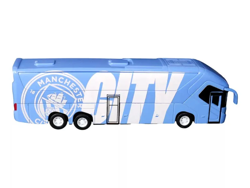 Autobusto oficjalna replika autobusu klubowego Manchester'u City, w którym podróżują zarówno zawodnicy, jak i zespół techniczny. Produkt wykonany jest w skali 1:50. Posiada otwierane drzwi boczne oraz koła z tarciem wstecznym. To idealny prezent dla fanów klubu piłkarskiego Manchester'u City. Świetnie sprawdzi się jako zabawka dla dzieci, lub figurka na półce. Produkt jest przeznaczony dla dzieci od 3 lat.