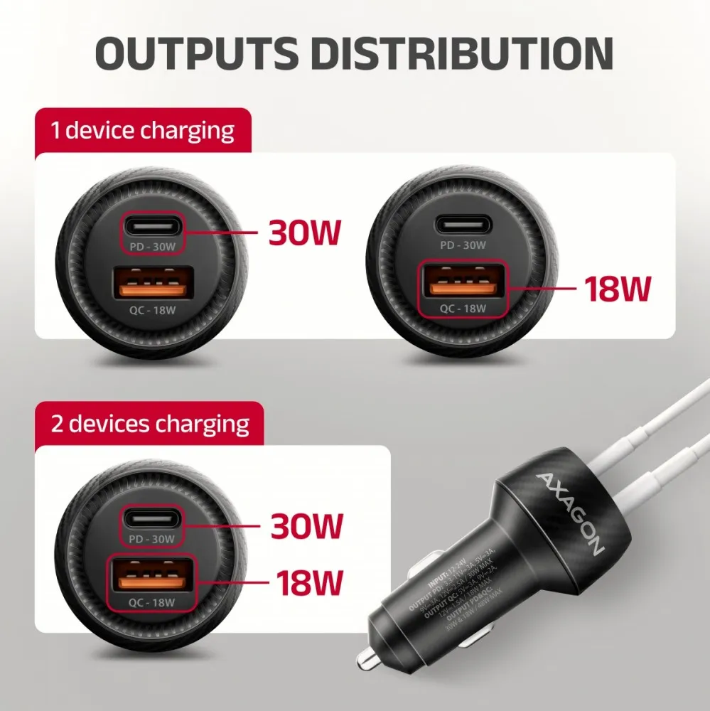 AXAGON Ładowarka samochodowa PWC-PQ48 48W z 2 portami, PD3.0, QC4+